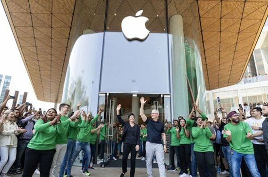 Apple's new retail store in Mumbai opened on Tuesday in the Reliance Jio World Drive mall, which is home to luxury brands such as Michael Kors, Kate Spade, and Swarovski. The store spans 20,800 square feet, which is larger than the planned Delhi outlet, as per local registration documents.