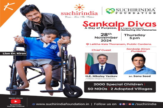 Suchirindia Foundation will be hosting its annual "Sankalp Divas" event on November 28th. This initiative, led by philanthropist and entrepreneur Lion Dr. Y. Kiron, has been a tradition for over 25 years, aiming to recognize and celebrate individuals who have made significant contributions to society.