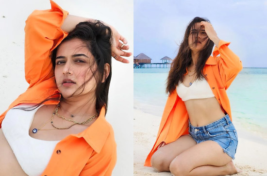 Now, Ashika has taken a bold step and made it clear that she is here to rule the roost and will not hesitate to burn the audience with her oomph factor. Sporting sexy denim shorts and white bra that is hugging her assets firmly, Ashika is sitting on the shore of a beach and caressing her mane. But what she has ensured is, she has given an extremely delicious view of her luscious thighs and a sneak peek of her cute navel. There is no doubt that the sex appeal in this one is amazing and so is the hot thigh show.