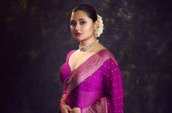 Here is Rashmi, looking absolutely adorable and gorgeous in a purple saree, even as she displays oodles of glamour and oozes sexiness in all her glory. The way she looks is absolutely seducing and that's why she has an impressive fan following in social media who adore her like anything, with so much fondness and love. She looks like a traditional hottie in every angle that rises the bar.