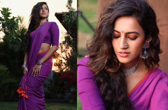 One of Niharika's latest photos, in which she is wearing a purple saree, has gone viral on social media. Fans are raving about her stunning appearance, with her curly hair and nose studs. The photo was taken during the pleasant evening dusk, and it has touched the hearts of many fans. They are in awe of how beautiful Niharika looks, with some comparing her to the legendary Peacock. She looks really cool 'n' hot, with a raw and rustic appeal that's beyond imagination for ordinary folks.