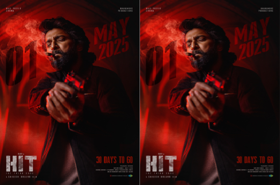 Currently, post-production work is progressing rapidly for 'HIT: The 3rd Case', which is set to release in theaters on May 1, 2025. In this context, the makers have released a 30-day countdown poster. Nani's intense look, smoking a cigarette and aiming a gun, makes the poster impressive. The poster is currently going viral on social media.