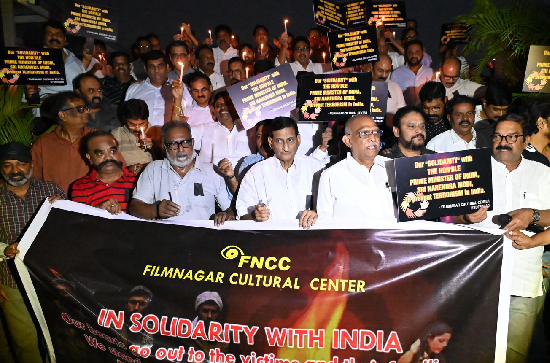 The Film Nagar Cultural Centre (FNCC) has expressed its profound shock and dismay over the barbaric terrorist attack in Pahalgam. Members of the FNCC condemned the attack on unity, harmony, and constitutional values and paid tribute to those martyred in the terrorist act by lighting candles.