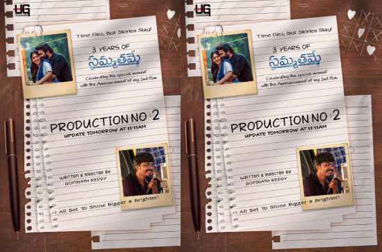 On the third anniversary of their charming romantic comedy hit, "Sammathame," director Gopinath Reddy and UG Productions have announced their exciting reunion for a new cinematic venture. "Sammathame," which captivated audiences with its engaging storytelling, was released exactly three years ago today, on June 24, 2022.