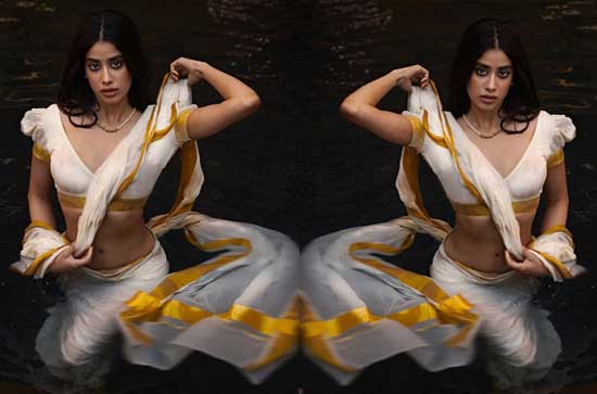 The element of sex appeal goes to the next level when things become wet. Quite often we see how rain songs and sequences which involve water onscreen tend to raise the steam. Now, one girl has used water to her advantage and she is creating heat waves using this wet formula. She is none other than Janhvi Kapoor and draped in a white saree, Janhvi is giving a bold view of her beautiful cleavage and a very tempting feast of her wet navel and side curves. While she looks with strong desire and passion in her eyes, the onlookers are going dry, unable to bear Janhvi's heat.