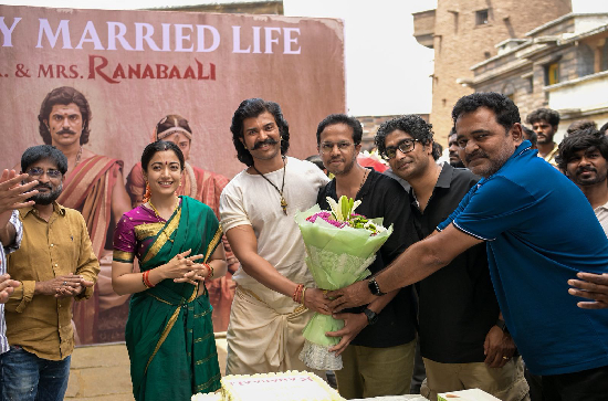 The sets of the upcoming magnum opus Ranabaali were filled with joy and festive spirit as the lead pair, Vijay Deverakonda and Rashmika Mandanna, returned to work following their recent wedding. The film unit organized a grand welcome for the couple, celebrating their new journey with a cake-cutting ceremony and heartfelt wishes, affectionately addressing them as "Mr. and Mrs. Ranabaali."