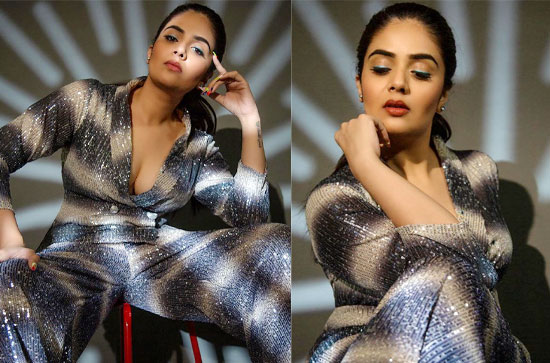 Here's one more still of Sreemukhi looking fantastic in stylish outfits. Her persona matches her attitude and the flashy dress and that's why we can say that she knows how to keep all of us happily entertained all the time.