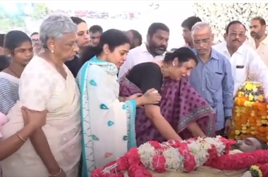 The atmosphere at the Film chamber was heavy with emotion. The glass that had covered Taraka Ratna's body was removed, allowing his mother to touch him one final time. Sita, Taraka Ratna's mother, was inconsolable, overcome by grief and loss. Her daughter, Mohana Rupa, was by her side, providing comfort and support during this difficult time.