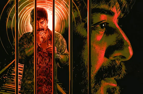 Today, the makers revealed the character poster of Arvind Swami, who plays the main villain Raju in this upcoming film. The poster showcases the actor with handcuffs and behind bars, giving a powerful look to his character. The retro-themed poster has several details that have caught the attention of the audience, leaving them wondering about the strength of Arvind Swami's character.