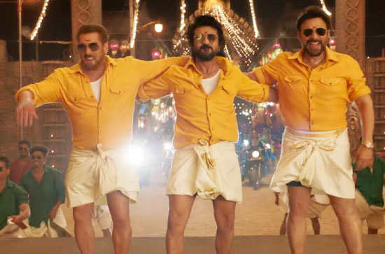 Charan's entry matches Salman Khan's energy, and his performance in the song is a highlight. The song was shot on a massive set, and the use of Telugu words in the Hindi song adds more charm to it. The choreography is perfectly composed to connect with the mass audience and the lungi steps are particularly impressive.