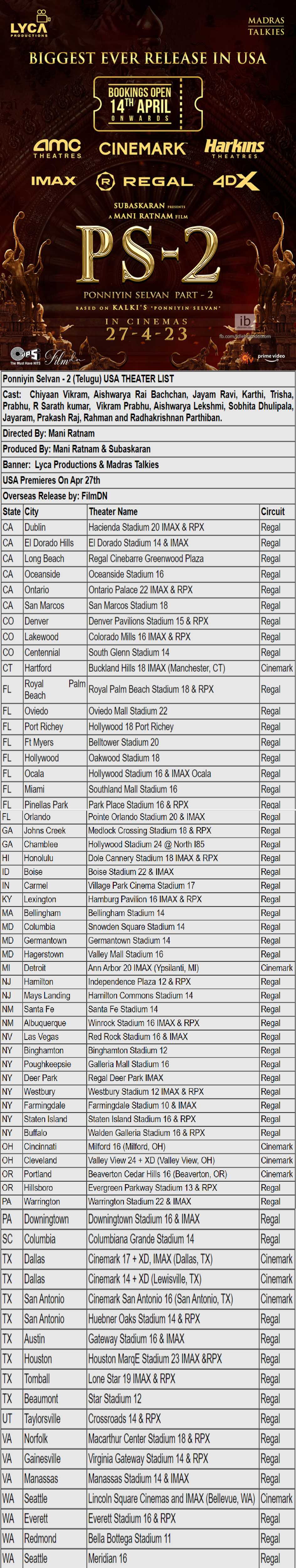 "The Telugu audience's support for good films is always inspiring," actress Trisha said. Our PS2 film will be released in theatres on April 28. Thank you to all of our actors and technicians. "Our journey for this film was an unforgettable one."Thank you, Mani Ratnam and Subaskaran.