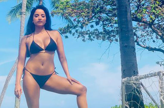 Sporting a football at her feet, she is giving other girls of age a run for their money with her super fitness levels. Her sex appeal is clearly reflected in her confident looks in front of the camera. No wonder men drool at her with all those curvatures and hot looks. She is definitely in the prime league of bikini babes in the film industry.