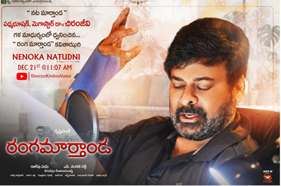 Rangamarthanda is an upcoming film starring Prakash Raj, Ramya Krishna, Brahmanandam, Anasuya Bharadwaj, Aadarsh Balakrishna, Rahul Sipligunj, Shivathmika Rajashekar, Ali Reza and others. The film is being directed by Krishna Vamsi while noted genius Ilayaraja is composing the tunes for the film.