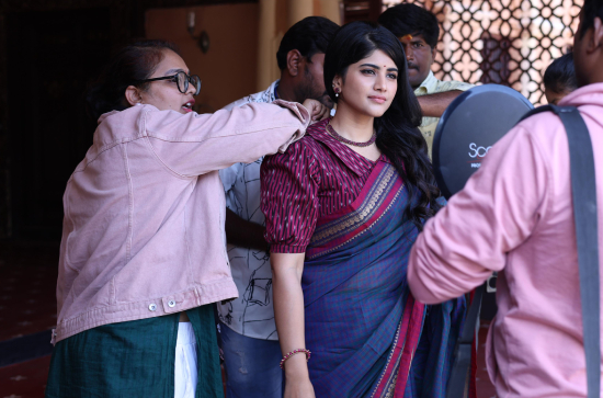 This research informed every costume choice, from the hero Naresh Agastya's tailored suits to Megha Akash's elegant yet understated sarees in cotton, linen, and khadi.