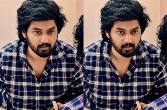 In the image, Mokshagnya is seen gazing into a mirror, sporting a modern and stylish look. Dressed in a casual checkered shirt, with his long hair and beard meticulously styled, he exudes a confident aura that has sent fans into a frenzy. This sophisticated image marks a departure from the traditional image associated with the Nandamuri family, hinting at a fresh and contemporary approach to his debut.