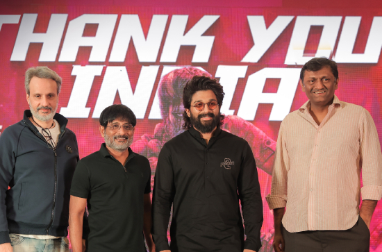 Allu Arjun, the charismatic star of the film, thanked the entire nation for their love and support.3 He emphasized that the film's success is a victory for India as a whole. He particularly thanked his director Sukumar for his vision and guidance.