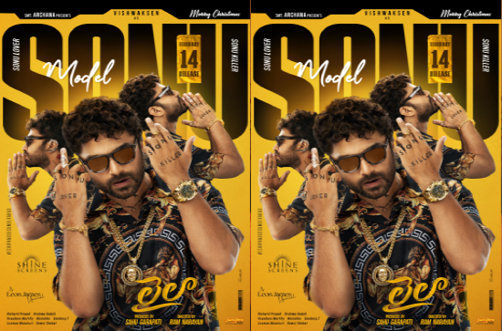 To celebrate Christmas, the filmmakers have unveiled the film's first look, presenting Vishwaksen in a strikingly stylish and affluent persona. Sporting trendy attire, shades, and eye-catching gold accessories, including a watch and jewelry, he exudes an air of cool confidence. As Sonu Model, he sports a distinctive neck tattoo along with "Sonu Lover" and "Sonu Killer" tattoos on his hands. His defiant gestures, prominently displaying both middle fingers, offer a glimpse into the complex and multifaceted nature of his character. The poster's blend of attitude and intrigue creates a memorable impact.