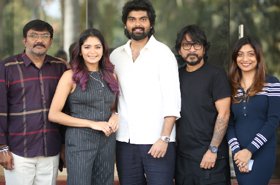 Hero Akash Murali expressed his gratitude to Mythri Movie Distributors for releasing his debut film in Telugu and praised his co-star Aditi and director Vishnu Vardhan.