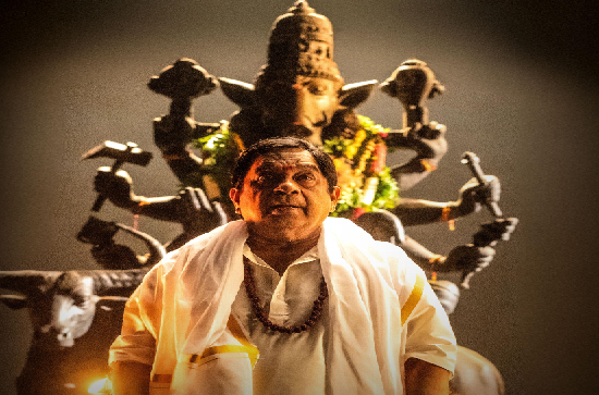 A new look of legendary comedian Brahmanandam from the upcoming film "Mahendragiri Vaarahi" has been released, coinciding with his birthday. The poster showcases Brahmanandam in a traditional attire, alongside the image of Goddess Vaarahi, hinting at the film's devotional theme.