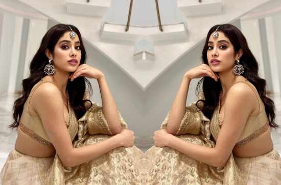 Wearing a golden lehenga that hugs all her assets, Janhvi is clearly the fantasy queen for her fans and followers. Her slowly improving career graph is also making her happy. Her seductive eyes and hot expressions are enough to make us drool over for her.