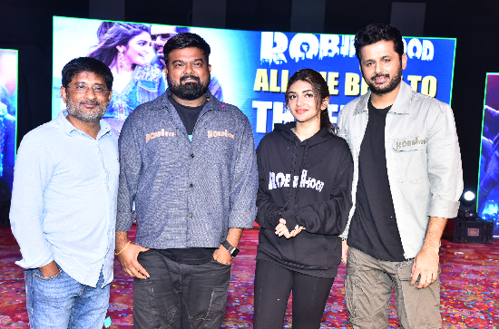 Director Venky Kudumula said, "We have released three songs from our film: 'Wherever You Go,' 'One More Time,' and 'Adi Da Surprise.' Just like these three songs, there are three types of students in every college. One category studies well and gets jobs in campus placements, like 'Wherever You Go, I Follow.' The second category writes backlogs saying 'One More Time.' The third category is like Ravi Garu, who studied engineering and became India's biggest producer. Do everything wholeheartedly, and you will definitely succeed. We made 'Robinhood' wholeheartedly too. Watch the film and bless us. Thank you."